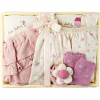 ●現品(キャミソールエプロン)対応身長80~90┣cm┫、(パンツ)対応身長50~90┣cm┫、(リストガラガラ)約7×6×4┣cm┫、(ソックス)約11~13┣cm┫×各1、(授乳スタイ)約17.5×14.5┣cm┫×2