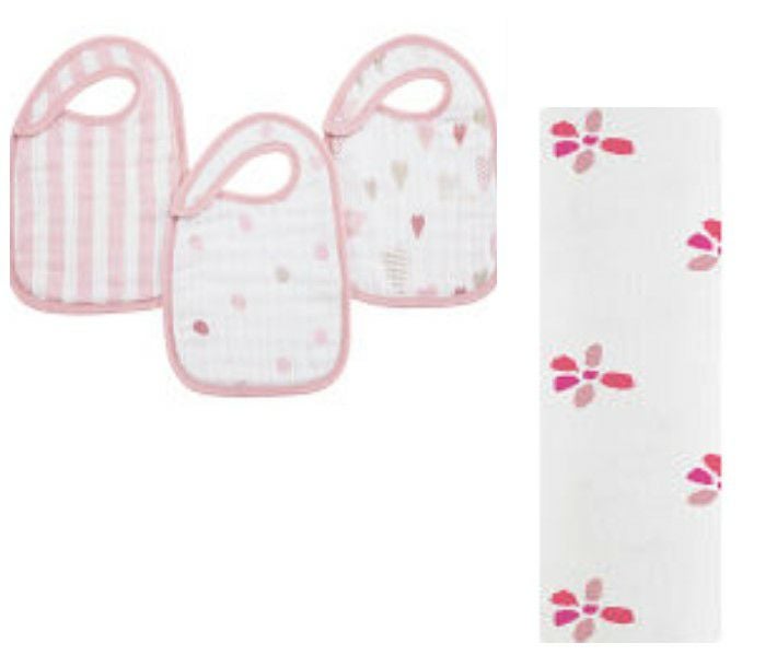 エイデンアンドアネイ スナップ付ビブ・オーガニックコットンスワドルセット ハートブレイカー ブルーム 7111&8921