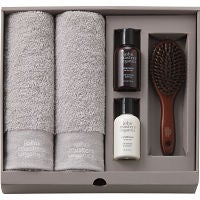 ●フェイスタオル2枚・シャンプー(60┣ml┫)1本・コンディショナー(60┣ml┫)1本・コンボパドルブラシ ミニ1本